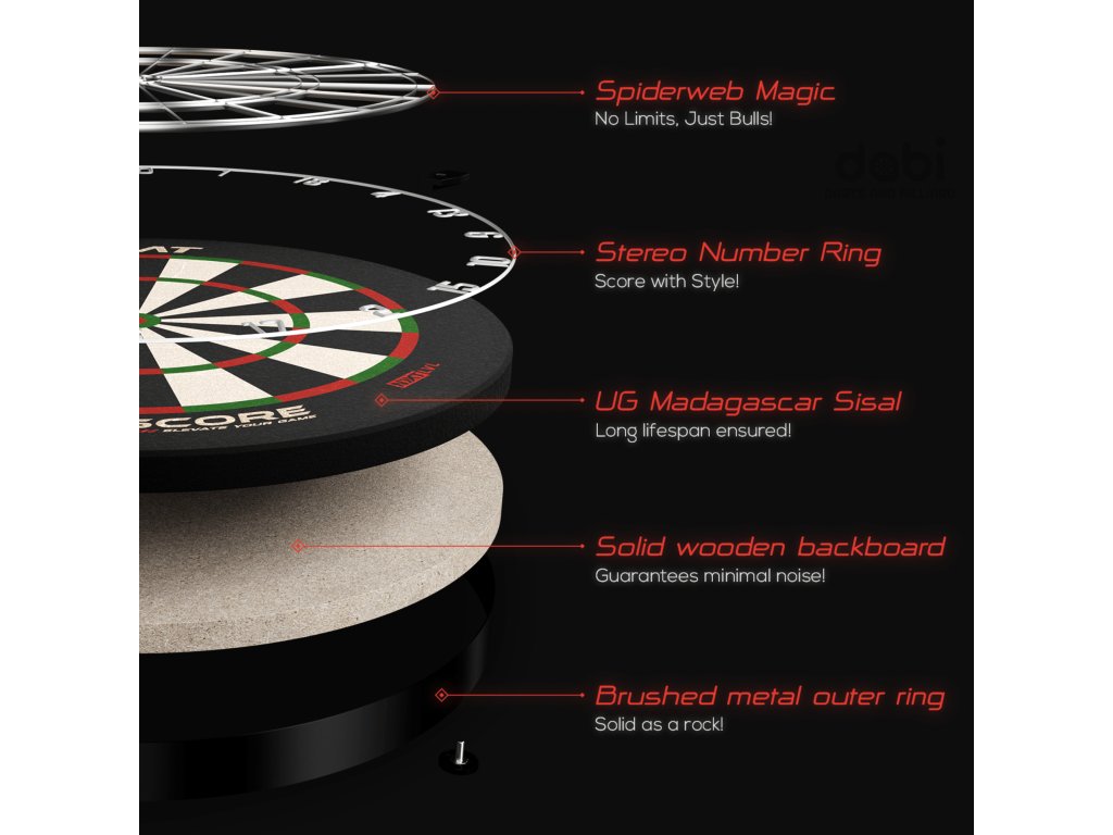 Sisalový terč GOAT NXT LVL je navržen pro pokročilé hráče. Je vyroben z vysoce kvalitního madagaskarského sisalu tak, aby poskytoval bezkonkurenční životnost. Ultra tenký žiletkový pavouk snižuje odrazy šipek a sportovně laděný číselník dodává terči punc kvality.