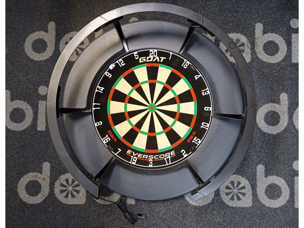 Osvětlení sisalového terče XQMax Saturn je v jedinečném designu. 5/6 kruhu, tedy 300° se spodní výsečí pro snadný přístup pro šipky zapíchnuté v terči.140 Led žárovek rozdělených do 5 pásků po 28. Propojeny jsou 6-ti nožkovými konektory. Svítivost 1000 lumen, napájení USB kabelem (nutný adaptér 5V2A-není součástí balení). Dotykový přepínač ZAP/VYP. Materiál ABS plast.