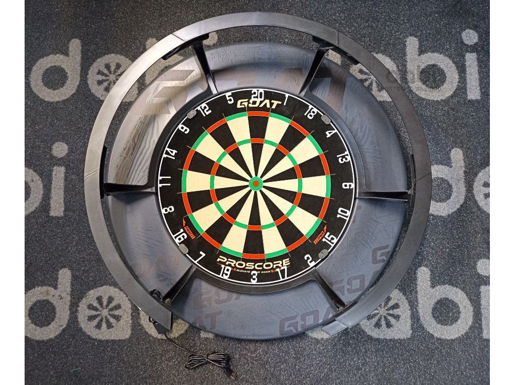 Osvětlení sisalového terče XQMax Saturn je v jedinečném designu. 5/6 kruhu, tedy 300° se spodní výsečí pro snadný přístup pro šipky zapíchnuté v terči.140 Led žárovek rozdělených do 5 pásků po 28. Propojeny jsou 6-ti nožkovými konektory. Svítivost 1000 lumen, napájení USB kabelem (nutný adaptér 5V2A-není součástí balení). Dotykový přepínač ZAP/VYP. Materiál ABS plast.