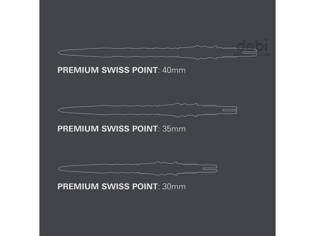 Sada 3 ks výměnných steelových hrotů Swiss Point, což je nový patentovaný systém, který vám umožní předělat délku, styl i barvu hrotů během několika sekund.