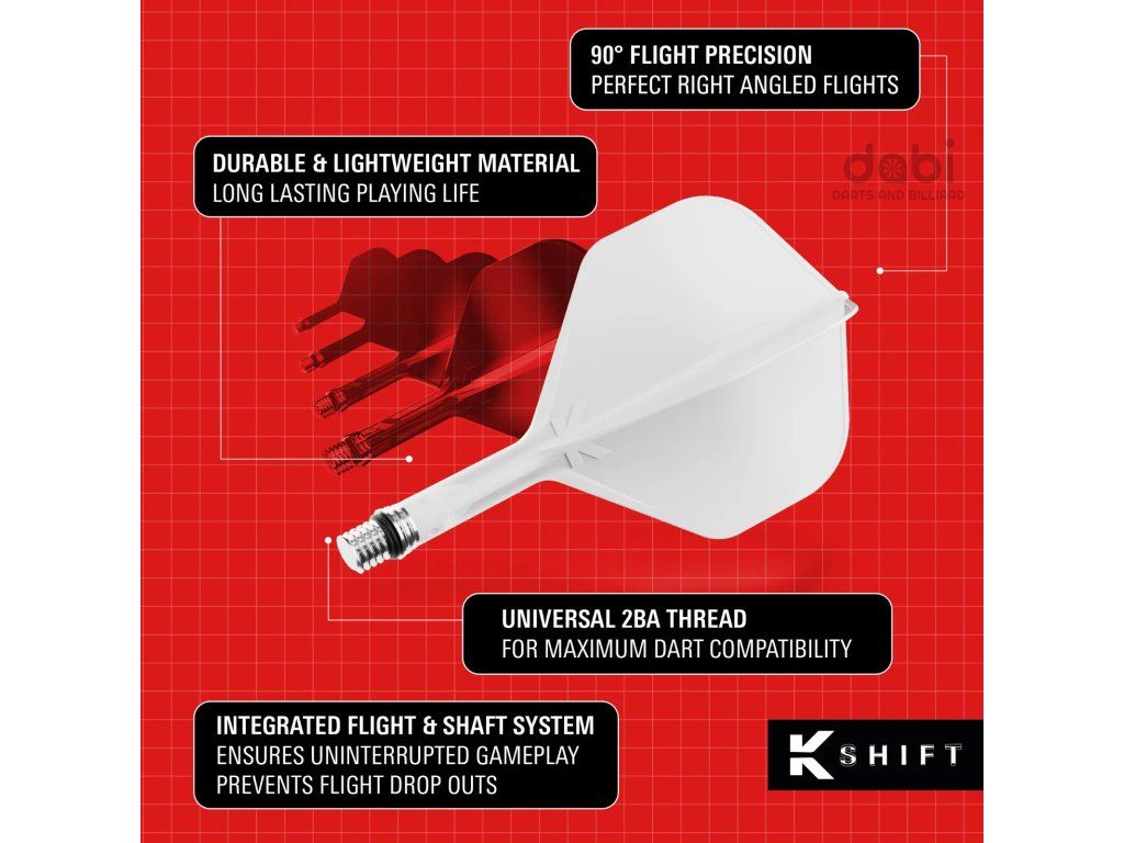Inovativní K-Shift systém od firmy Target kombinuje letku a násadku v jednom s otočným mechanismem, který snižuje odrazy. Jsou vyrobeny z tvrzeného polymeru vyztuženého vlákny. Díky tomu zůstávají po celou dobu stabilní, protože je možné vyloučit ohýbání křídel letky.