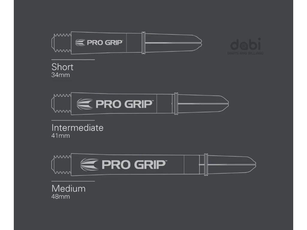 Násadky Pro Grip se vyrábí ve třech velikostech - délka bez závitu: