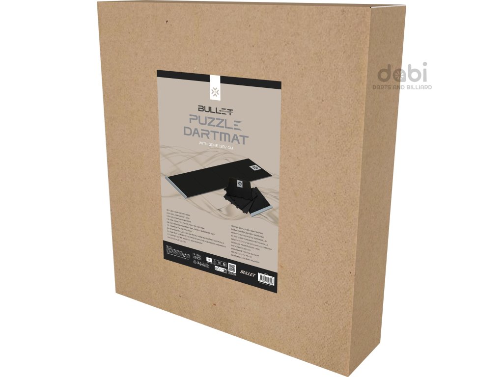 Bullet podložka k terči puzzle je dobrým doplňkem pro každého hráče. Chrání podlahu před zbytečným opotřebením, poškozením a padajícími šipkami. Zároveň chrání i vaše šipky, které se ničí pádem na tvrdou podlahu. Podložka se skládá ze čtyř stejných částí. Jednotlivé díly lze snadno sestavit i demontovat. Na začátku podložky je 3cm vysoká odhodová čára. Podložka je dlouhá 2,37 m a má tak oficiální vzdálenost od terčů.