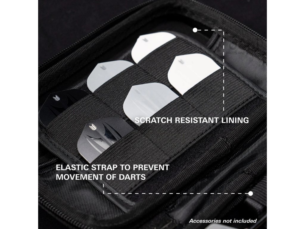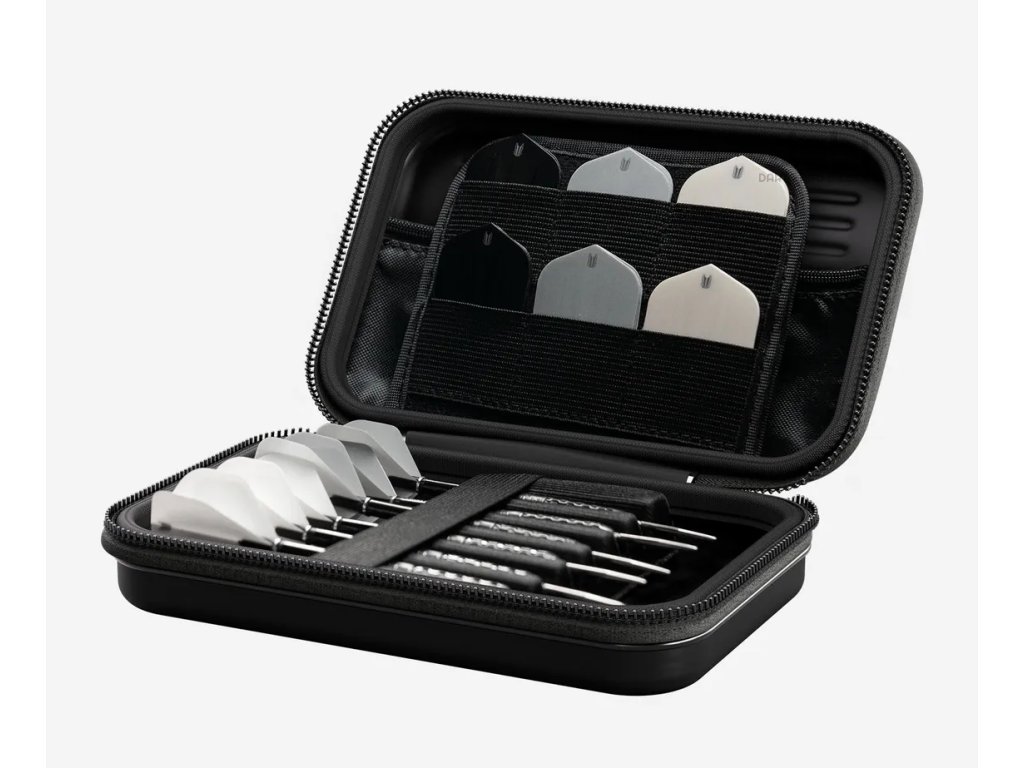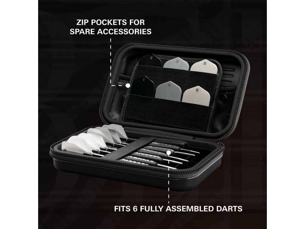 Pevné velké pouzdro na dvě sady šipek a spoustu příslušenství.