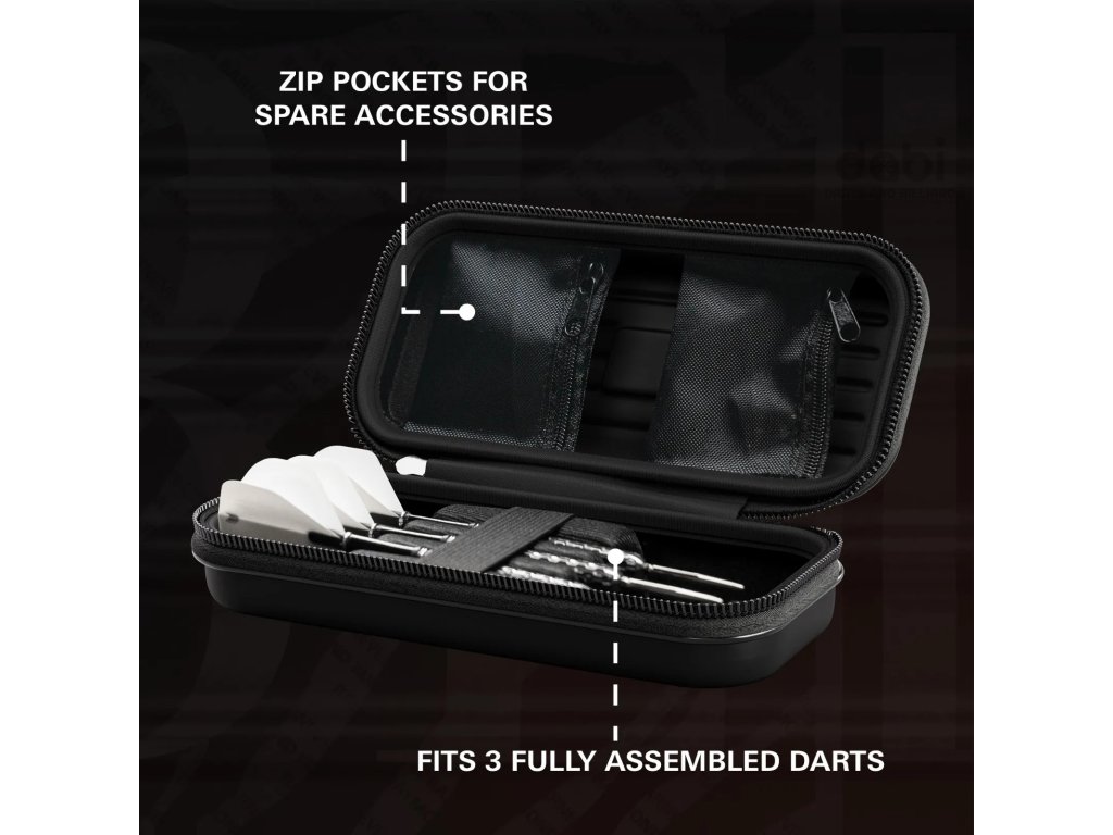 Vnitřek pouzdra je opatřen sametovou vrstvou, pro větší odolnost proti poškrábání. Šipky lze uložit uvnitř pouzdra plně sestavené a jsou zajištěné elastickým páskem,