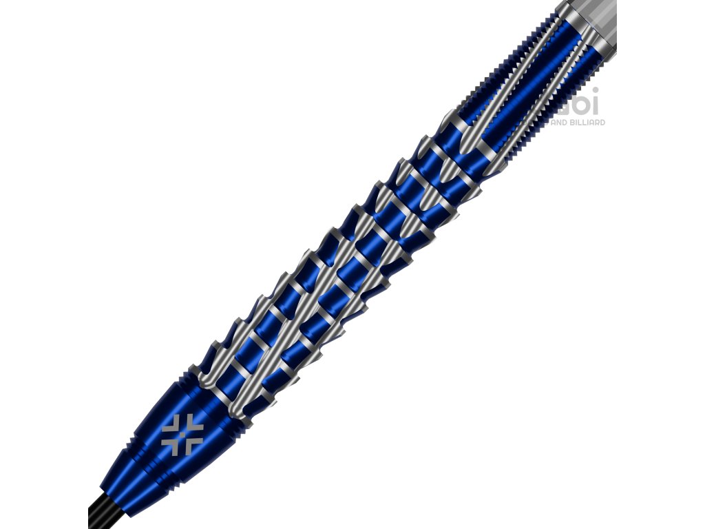 Stříbrný mírně torpédový barel z 95% wolframu je zakončen modrou povrchovou úpravou. Vyznačuje se výraznými stříbrnými spirálovými zářezy obtočenými kolem tmavě modré povrchové úpravy, které jsou doplněny třpytivými stříbrnými kroužky, které zlepšují úchop i kontrolu. Tento propracovaný profil poskytuje vynikající vyvážení a plynulé a jisté uvolnění šipky při odhodu.