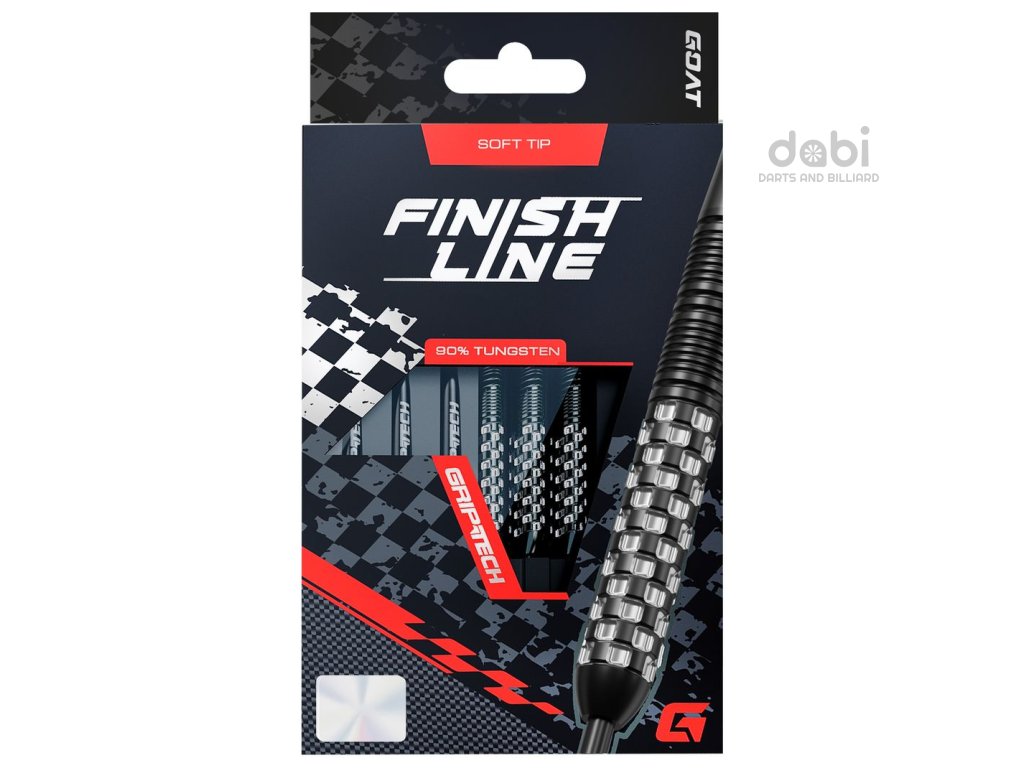 Šipky GOAT Finish Line jsou vyrobeny z 90% wolframu. Tyto šipky, inspirované nadšením z motoristického sportu a ikonickou šachovnicovou vlajkou, jsou vyrobeny pro hráče, kteří odmítají být druzí.