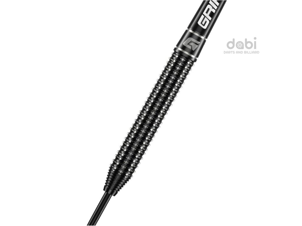 Rovný černo-stříbrný barel z 90% wolframu nabízí po celé délce ostrý kvadratický grip. Logo Goat se nachází v zadní části barelu.