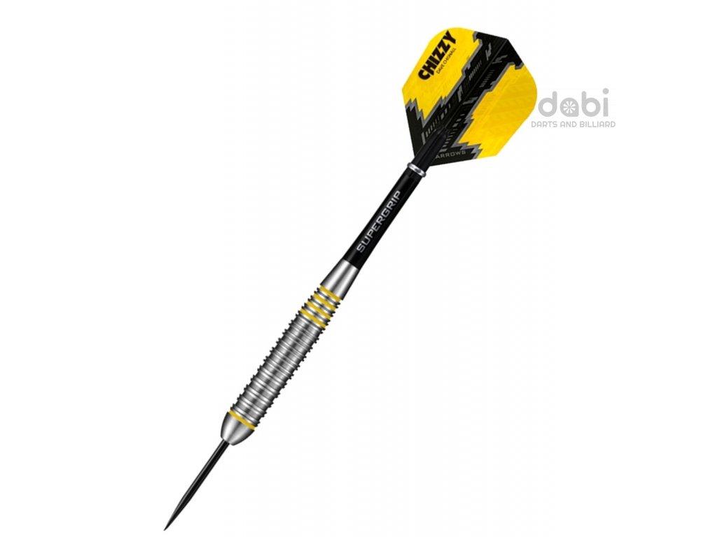 Kolekci wolframových šipek Dava „Chizzy“ Chisnalla rozšiřuje atraktivní řada mosazných šipek Chizzy Brass. Ty jsou, stejně jako její wolframové protějšky, rozdělené do tří segmentů - dvojité žraločí drážky vpředu i vzadu a uprostřed dvojité ploché prstence. Nechybí ani pět kroužků v zářivě žluté Chizzyho barvě.