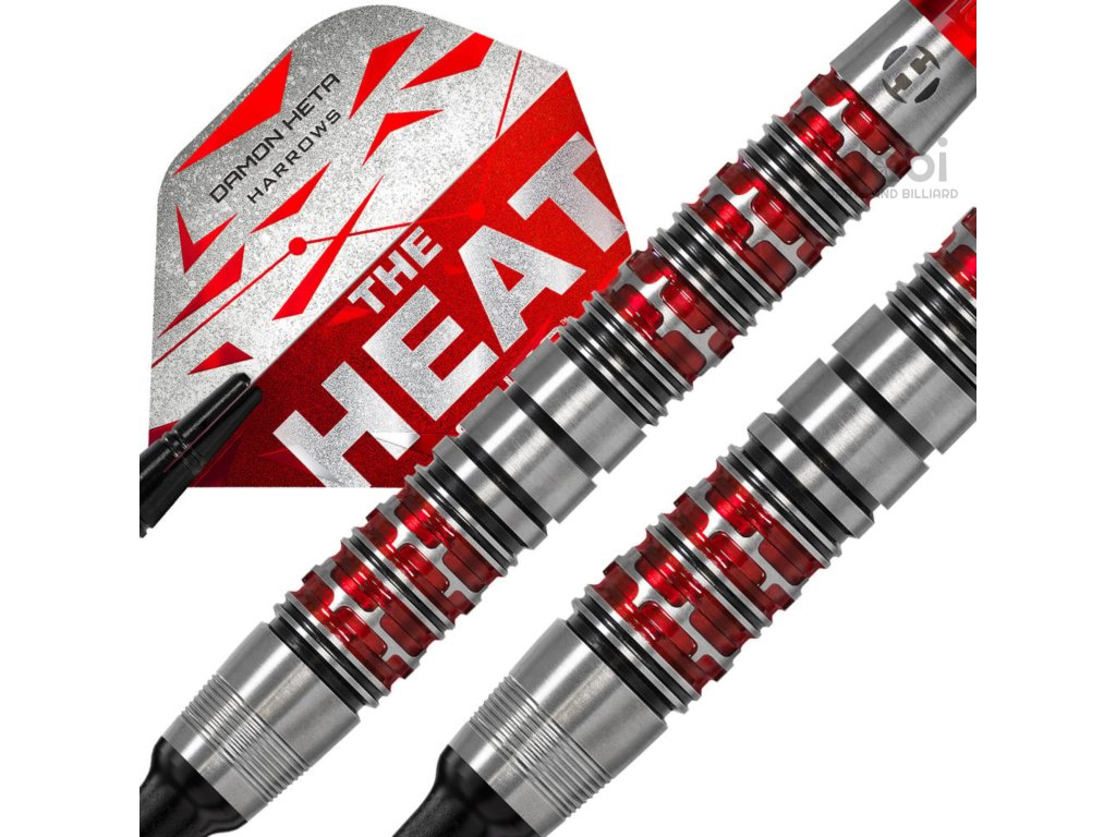 Šipky Damon Heta Series 3, australské jedničky a hvězdy PDC Damona 'The Heat', jsou výsledkem pečlivého výzkumu a vývoje mezi Damonem a designérským týmem. Barel z 90 % vysoce kvalitního wolframu obsahuje novou flexibilní část frézování navrženou a použitou v prstencové rukojeti tak, aby Damonovi poskytla extra cit. Povrchová úprava je zakončena odolnými galvanicky pokovenými povlaky v černé a červené barvě uvnitř řezů.