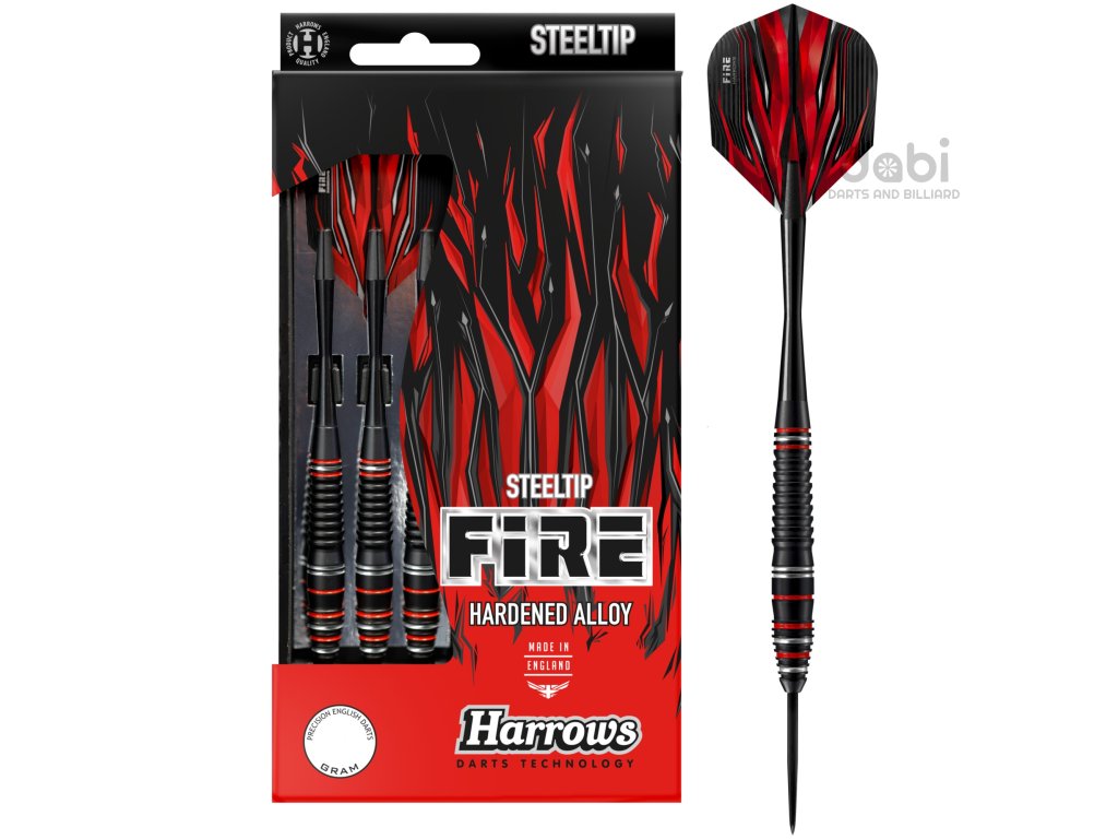 Šipky z vysoce kvalitní slitiny jsou nejnovějším přírůstkem Harrows do řady dynamických šipek. Kuželovitý barel se středovým vyvážením zdobí žraločí prstencové drážky, které poskytují optimální grip i nápadný vzhled. Šipky Fire High Grade Alloy, které jsou inspirované wolframovými šipkami Fire Inferno, mají odolnou černou povrchovou úpravu doplněnou výraznými stříbrnými a červenými prstenci. Šipky Fire High Grade Alloy jsou doplněny černými násadkami Speedline a letkami Fire.