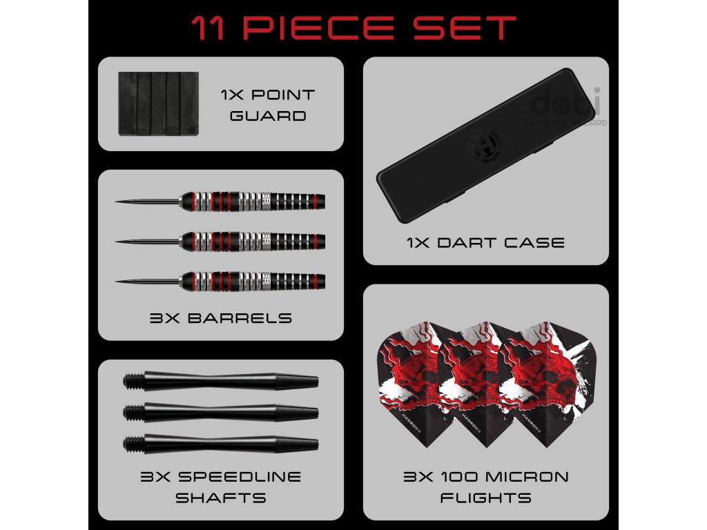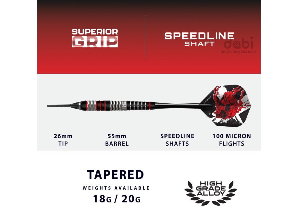Vyrobené z prvotřídní nerezové oceli, tyto šipky jsou provedeny v charakteristické černo-červené barevné kombinaci Ryana Searlea, doplněné o detaily v přirozeném odstínu wolframu - působivý design, který funguje stejně skvěle, jak vypadá.