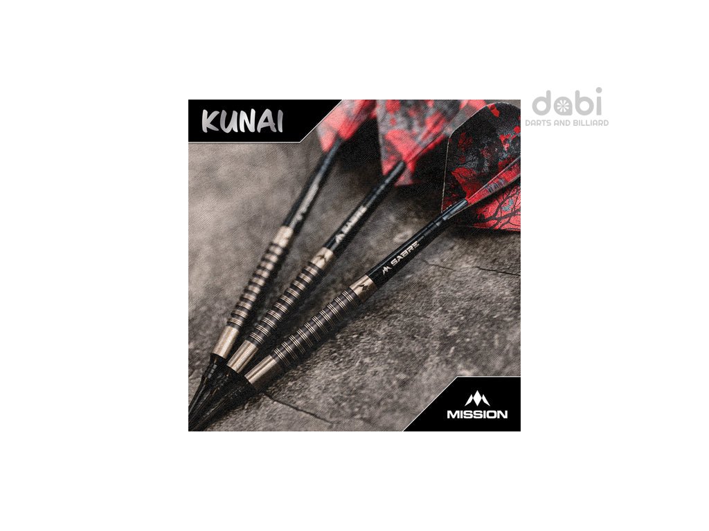 Šipky Mission Kunai jsou inspirované japonským víceúčelovým nožem. Jsou vyrobeny z prémiového 95% wolframu a mají černý PVD povlak. Střední část rovného barelu se vyznačuje jemným agresivním gripem, který zahrnuje dlouhou část z přírodního wolframu proloženou černým PVD povlakem, díky čemuž jsou ideální pro hráče, kteří preferují šipky s dobrou přilnavostí. Přední část barelu má hladký zužující se nos. V zadní části šipky se nachází krátká hladká část s laserem vyrytým logem Mission.