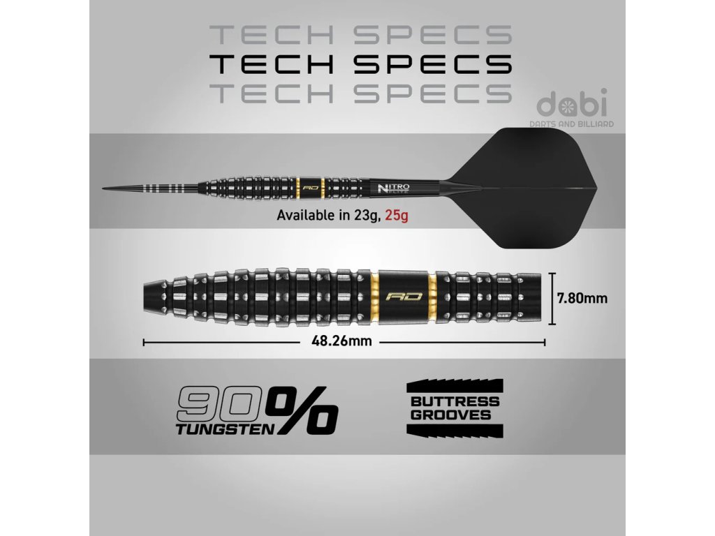 Barel šipky je vyroben z 90 % wolframu pro dokonalou rovnováhu a cit. Je ztělesněním elitního inženýrství a propracovaného designu, navrženého tak, aby vyhovoval každému stylu hry. Díky integrovanému systému letky s násadkou Nitro Flite nabízí řada Ascend konzistenci profesionální úrovně. S jemnými zlatými detaily vyzařuje řada Ascend sílu a prestiž.
