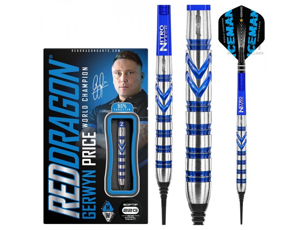 Oblíbené šipky v arzenálu Icemana během jeho profesionální kariéry, dovedly Gerwyna k několika titulům PDC Major a na vrchol světa šipek – mistr světa PDC a světová jednička v roce 2021. Šipky Red Dragon Gerwyn Price Originals jsou šipky s barely 90% wolframu v moderním designu. Modrá barva dodává šipkám jedinečný vzhled. Barely jsou doplněny násadkami Nitrotech a letkami Ionic Iceman. V zadní části logo RD.