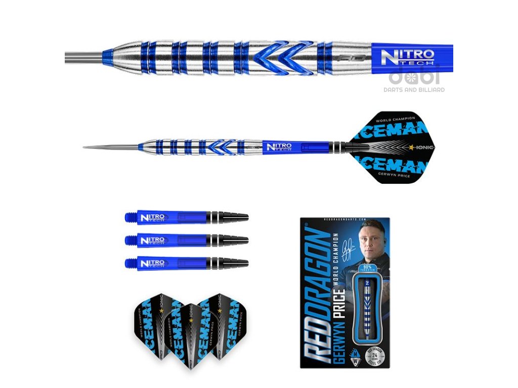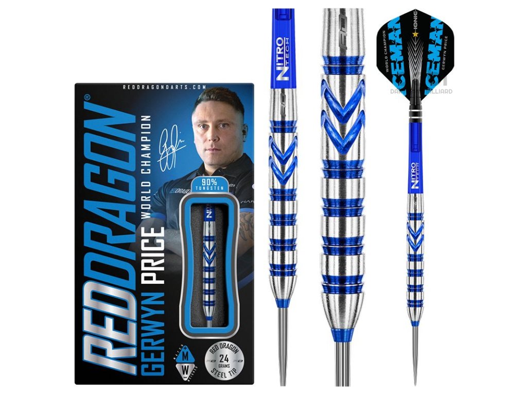 Oblíbené šipky v arzenálu Icemana během jeho profesionální kariéry, dovedly Gerwyna k několika titulům PDC Major a na vrchol světa šipek – mistr světa PDC a světová jednička v roce 2021. Šipky Red Dragon Gerwyn Price Originals jsou šipky s barely z 90% wolframu v moderním designu. Modrá barva dodává šipkám jedinečný vzhled. Barely jsou doplněny násadkami Nitrotech a letkami Hardcore Iceman.