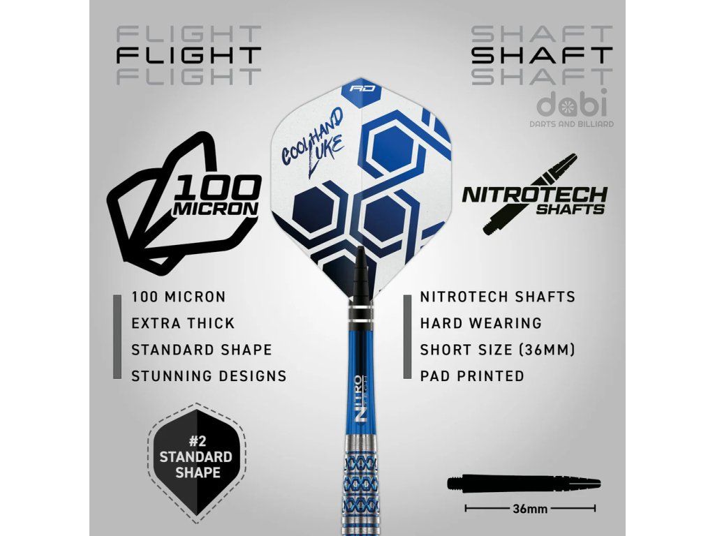 šipka Lukův klidný a sebevědomý přístup ke hře. Charakteristický design představuje kombinaci modrých a stříbrných akcentů,