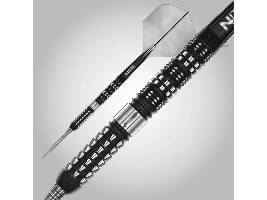 Šipka navržená s přesností, vyvážeností a smyslem. Kombinace výrazného černého a stříbrného stylu s pečlivým technickým frézováním. Každý prvek šipky Recon byl navržen s ohledem na účel a výkon. Šipka Recon, vyrobená z 90% wolframu, poskytuje unikátní úhlové frézování, vynikající profil úchopu, který hráčům poskytuje lepší kontrolu a jistotu při každém hodu. Dvoubarevná černá PVD a přírodní stříbrná povrchová úprava nejenže poskytují impozantní vzhled, ale také zvyšují životnost barelu.