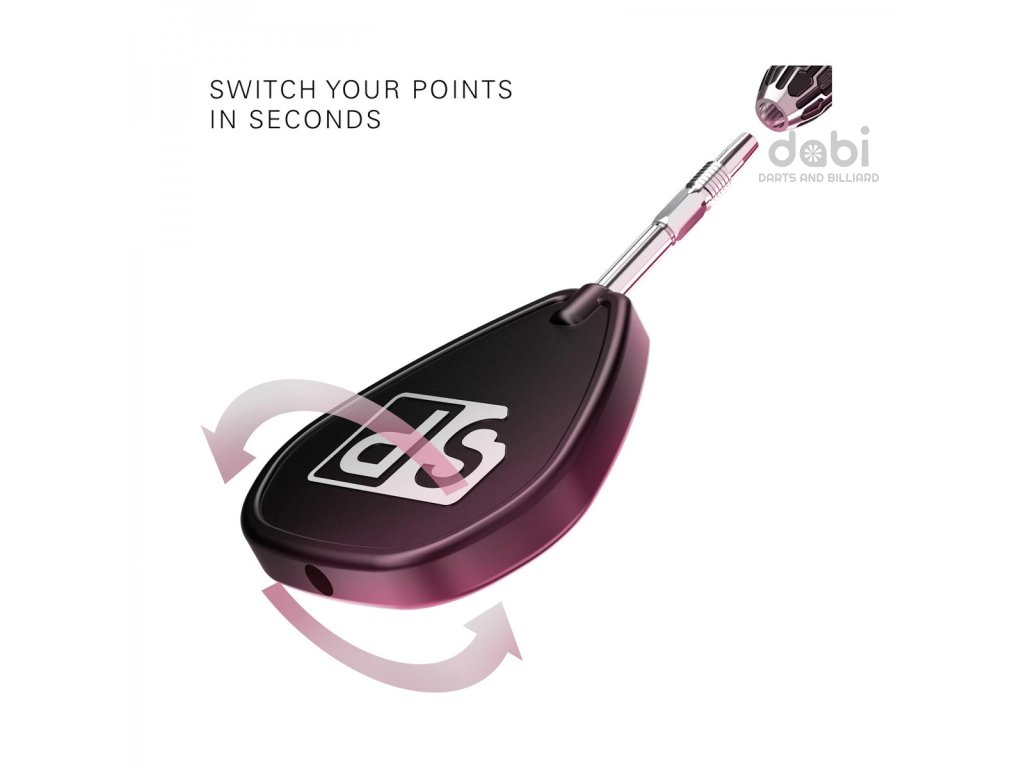Hroty Swiss Points jsou kompatibilní pouze s barely Target Darts Swiss Point a nelze je kombinovat s běžnými hroty pro nalisování ani s hroty se závitem 2BA.