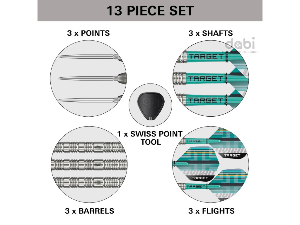Šipky Hydro Swiss Point jsou inspirovány přesností a konzistencí pohybu plynulého jako voda. Jsou navrženy tak, aby poskytovaly plynulý hod se zvýšenou přilnavostí a kontrolou. Barely z 90 % wolframu mají jemně frézované radiální drážky a tvarované výřezy, které kombinují moderní estetiku s hmatovým pocitem.