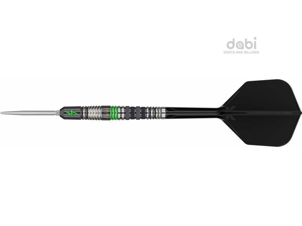 Rovný barel z 90% wolframu je proveden v barevné kombinaci stříbrná/černá, doplněn zelenými prvky. Přední část barelu je hladká, ve střední a zadní části je grip výrazně ostřejší.