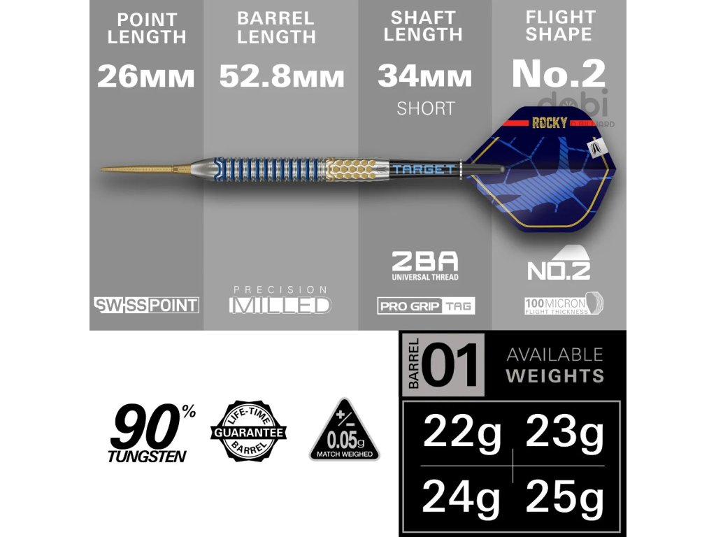 Target - šipky steel , Rocky GEN1 - Wolfram 90% , 22g