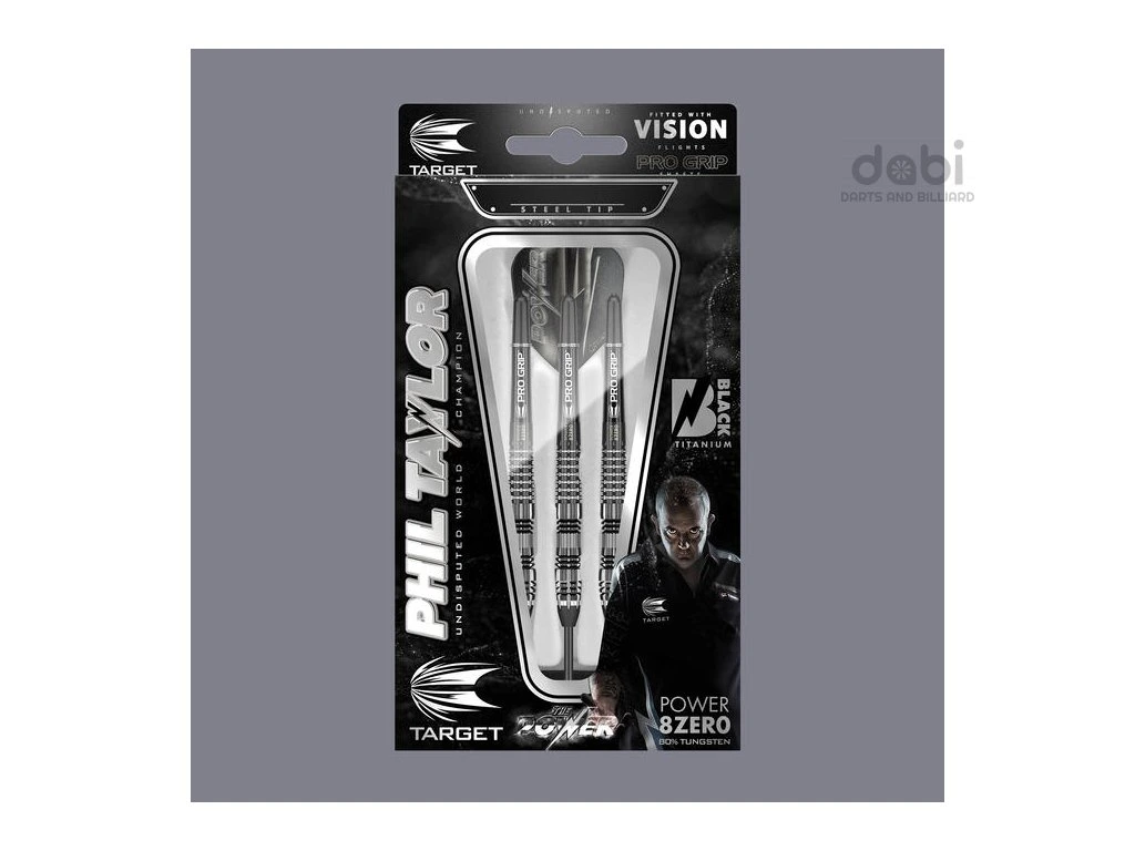 Target - šipky steel , Power Phil Taylor Black Titanium - Wolfram 80% , 23g