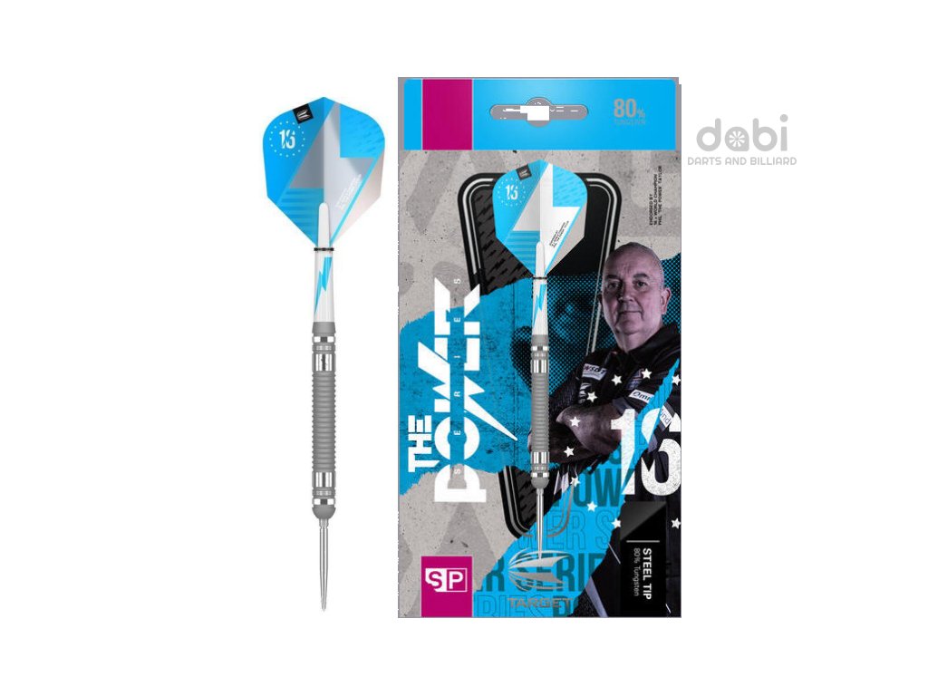 Exkluzivní šipky mnohonásobného mistra světa Phila Taylora z dílny Target - jedinečná technologie a design. Kombinace vrstev vytváří jedinečnou matnou texturu a radiální drážky jsou propracovány tak, aby vytvořily nápadný stříbrný povrch.