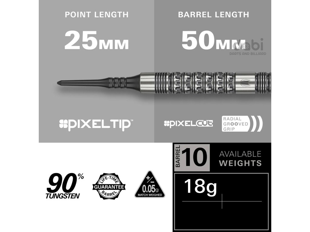Řada šipek Redux je inspirována propracovanými detaily barelů s pixelovým výbrusem – kombinací formy a funkčnosti. Každý barel z 90% wolframu je zdoben jemnými diamantovými výbrusy, které poskytují výjimečnou kontrolu a rovnováhu při každém hodu. Jemné radiální drážky vpředu a vzadu umožňují snadné umístění prstů a poskytují variabilitu si úchop přizpůsobit svému stylu.