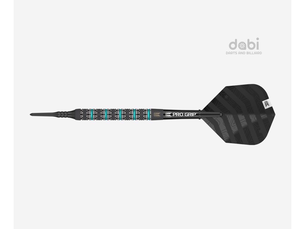 Barel z 90% wolframu nabízí několik variant úchopu, včetně CNC frézování, která zajišťují pevný úchop a jsou odděleny radiálními drážkami. Tyto drážky jsou následně překryty tyrkysovým povlakem, který dodává šipce vzhled. Černý barel s PVD povlakem je následně opatřen povrchovou úpravou Target Pro Grip.