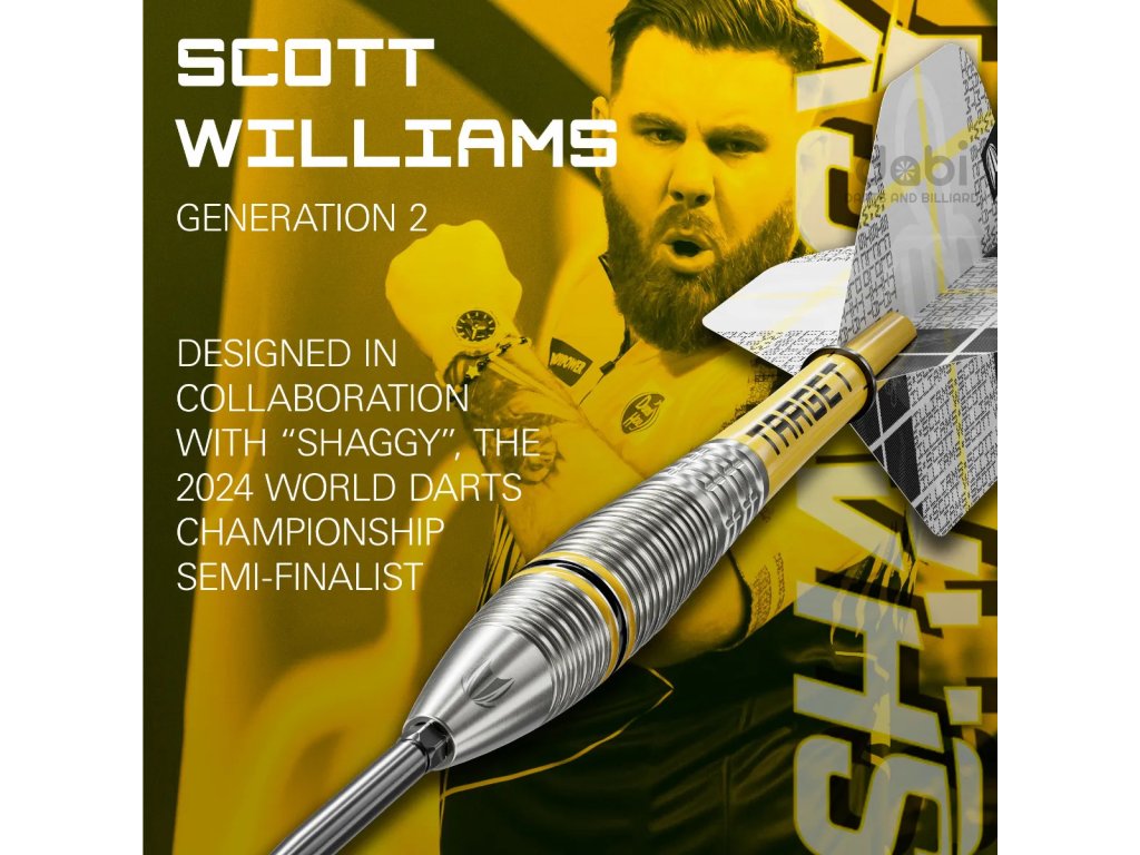 Šipky Scott Williams byly navrženy spolu s ‚Shaggy‘ podle jeho přesných požadavků. Torpédový barel z 90 % wolframu má celou řadu variant úchopu – hlavním rysem je agresivní radiální drážkovaní ve středu barelu, ale barel má také nanogrip vzadu a frézování na CNC stroji vpředu. Logo Target je umístěno v přední části barelu.