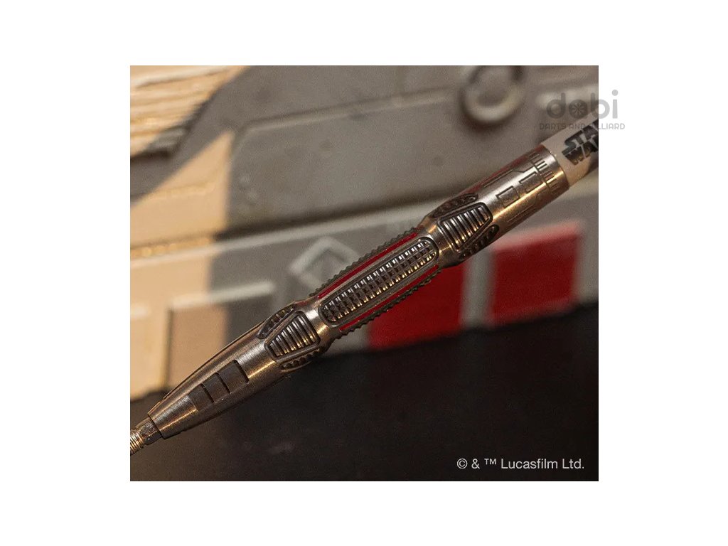 Tělo z 90% wolframu má charakteristický, precizně frézovaný profil s radiálně drážkovaným úchopem, který poskytuje vynikající kontrolu a konzistenci při každém hodu. Jeho vylepšené rozložení hmotnosti zajišťuje plynulé uvolnění a přesnost, zatímco leštěný povrch odráží elegantní tvar legendárního X-Wingu.