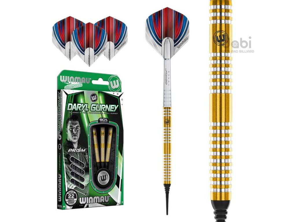 Profesionální softové šipky od firmy Winmau pro špičkového světového hráče Daryla Gurneye. Daryl Gurney se rychle stal superstar PDC a tyto 90% přesné repliky pomohly podpořit jeho úspěch. Elegantní profil, doplněný úžasným povlakem Nitrid Titanium.