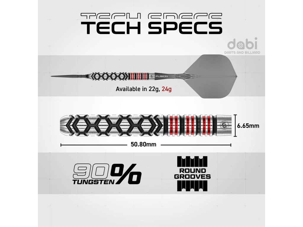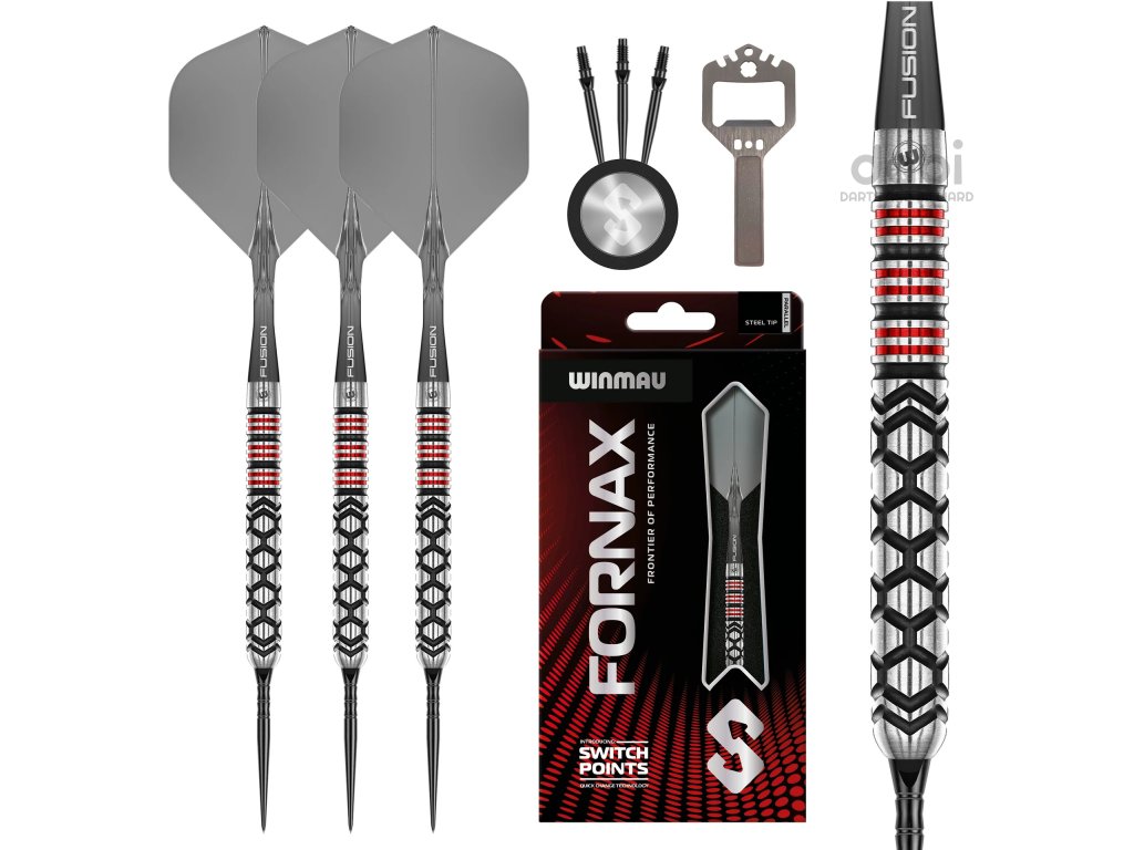 Precizně frézovaný trojúhelníkový barel Fornax je tvarován pro daný účel, geometrický vzor poskytuje jistý a opakovatelný úchop a zajišťuje konzistentní uvolnění a vyvážený let. Propracovaný design zvyšuje výkon. Fornax, navržený se systémy Winmau Fusion a Switch Point, umožňuje hráčům plnou přizpůsobivost. Technologie Fusion zlepšuje kontrolu nad hodem a odolnost, zatímco Switch Points umožňují rychlé změny hrotu.