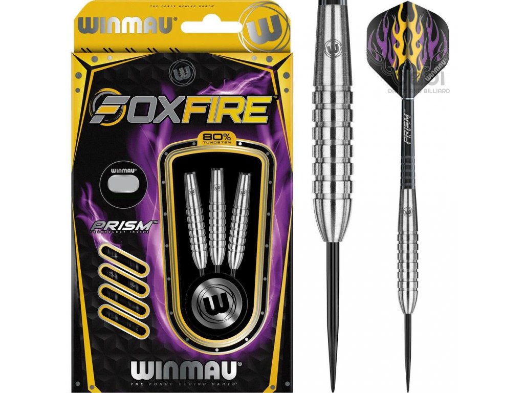 Řada Foxfire s barely z 80 % wolframu nabízí skvělý produkt s vysokou hmotností a nízkým objemem. Zaručená kvalita přináší šipky na vysoké úrovni. Krátký stříbrný torpédový barel má neostrý grip. V zadní části je doplněn logem Winmau.