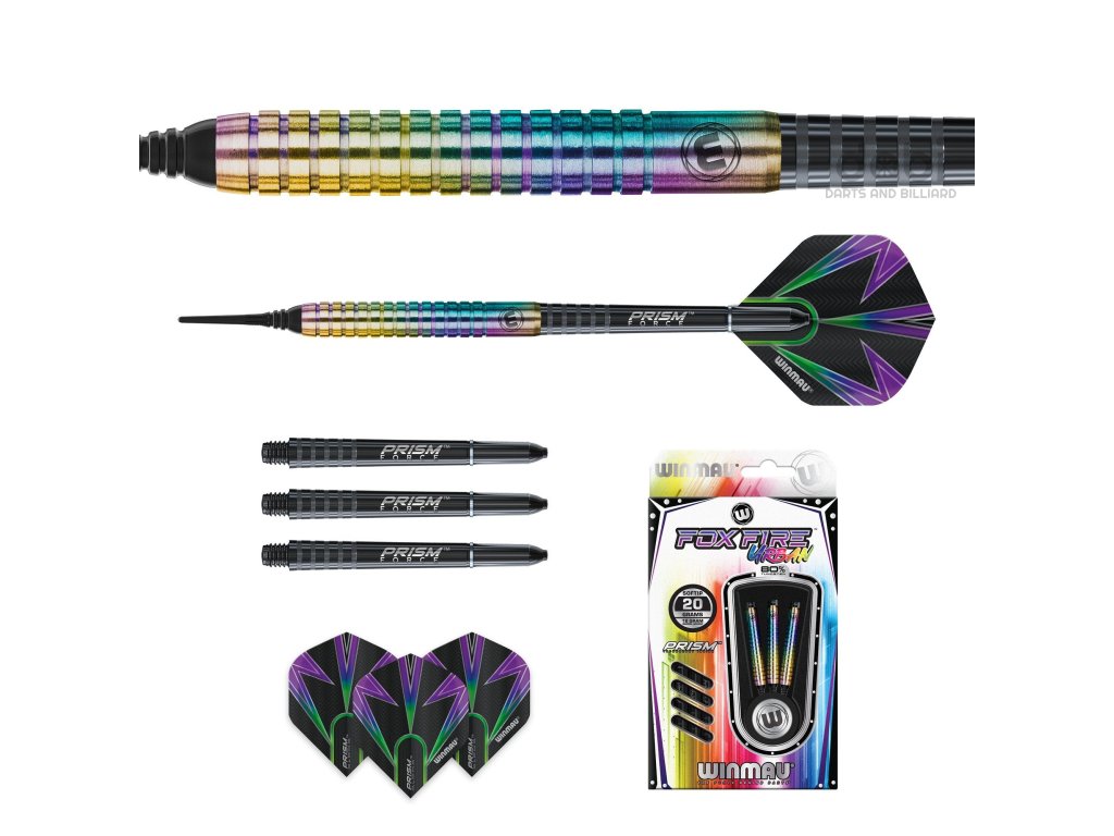 Řada Foxfire s barely z 80 % wolframu nabízí skvělý produkt s vysokou hmotností a nízkým objemem. Zaručená kvalita přináší šipky na vysoké úrovni. Rovný barel v duhových barvách má neostrý grip. V zadní části je doplněn logem Winmau.