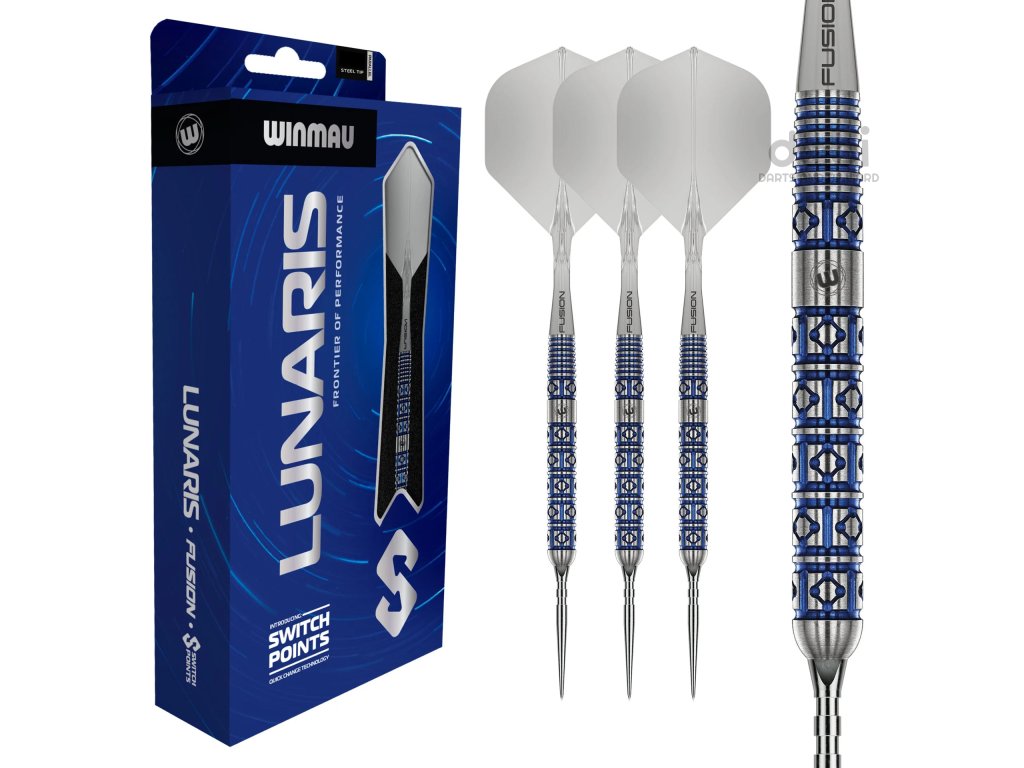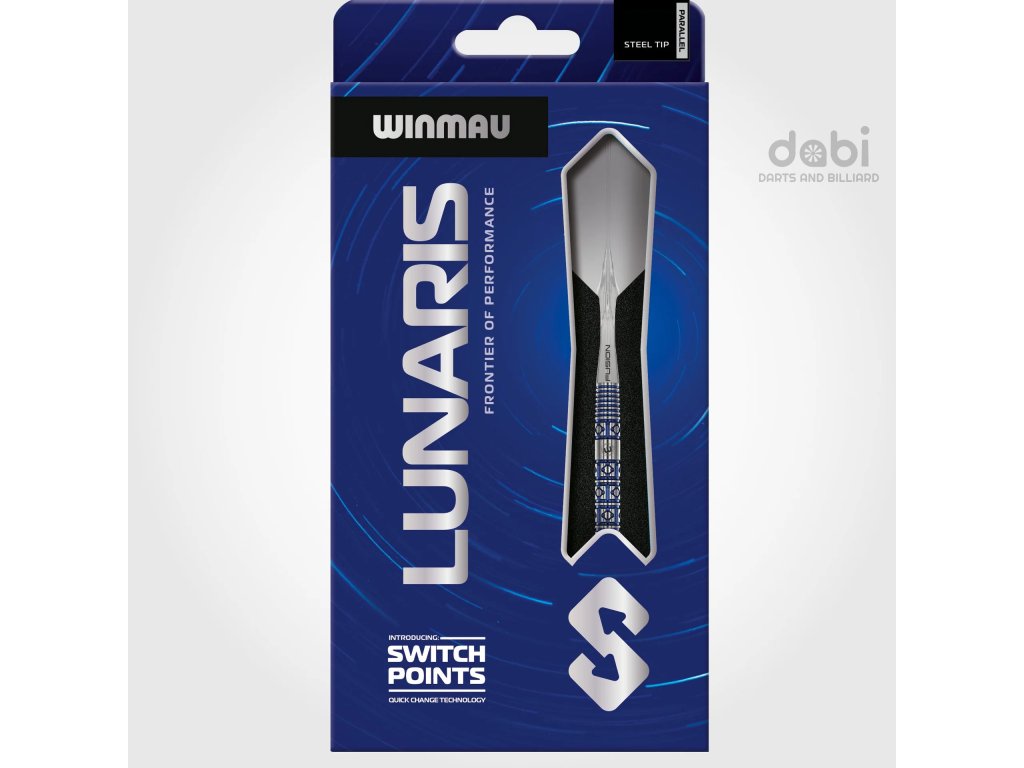 Lunaris, inspirovaný půvabnou geometrií noční oblohy, odráží uspořádání a symetrii souhvězdí Lyry, což oživuje jeho barel s diamantovým a liniovým frézováním. Design poskytuje jistý úchop, konzistentní kontrolu a modrý vizuál s funkčním kroužkem v zadní části. Šipka Lunaris je vybavena inovativními systémy Fusion a Switch Point od společnosti Winmau a nabízí naprostou přizpůsobivost. Technologie Fusion zlepšuje kontrolu nad hodem, zatímco Switch Points umožňují rychlé změny hrotu. S několika profily úchopu navrženými pro různé styly házení poskytuje Lunaris každému hráči perfektní pocit.