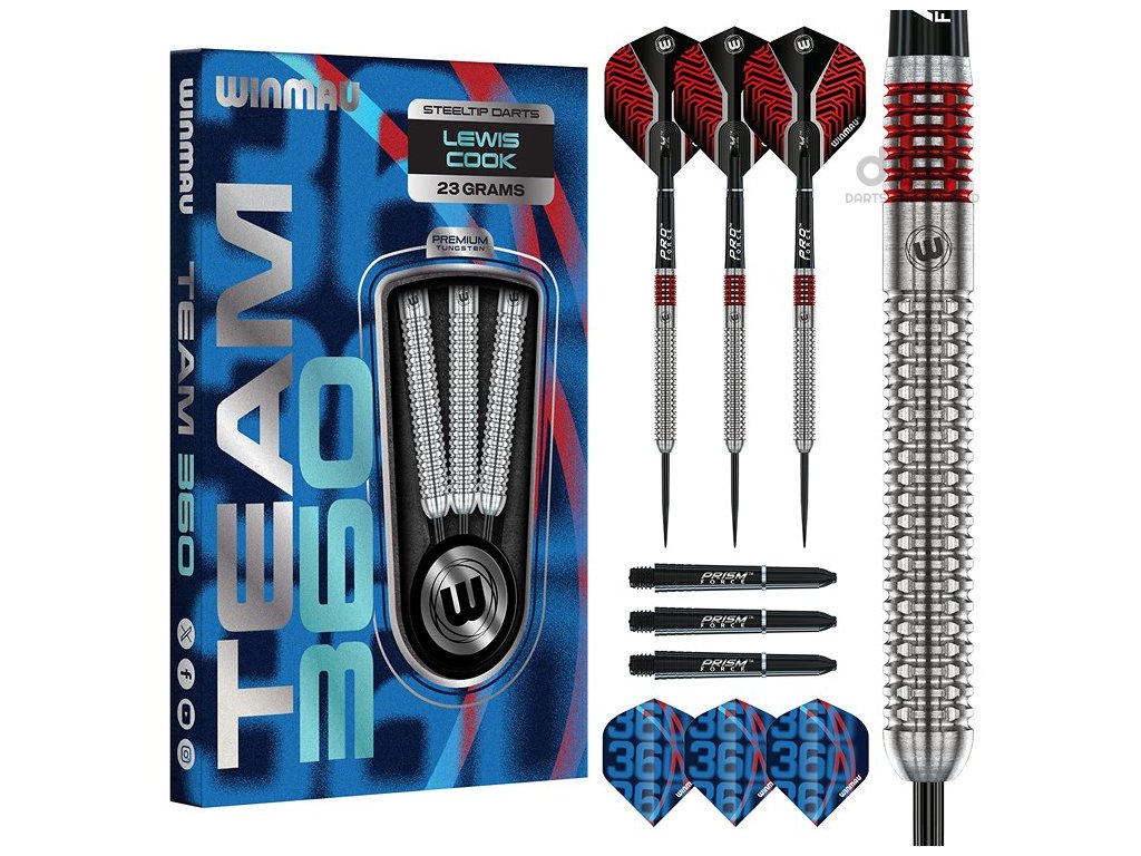 Winmau - šipky steel , Team 360 Lewis Cook - Wolfram 90% , 23g