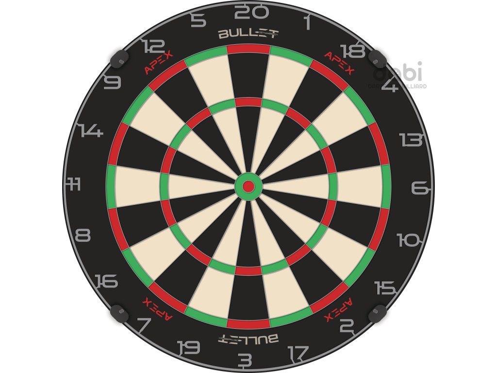Sisalový terč Bullet Apex je navržen pro pokročilé hráče. Je vyroben z vysoce kvalitního brazilského sisalu tak, aby poskytoval bezkonkurenční životnost. Ultra tenký žiletkový pavouk snižuje odrazy šipek a sportovně laděný číselník dodává terči punc kvality.