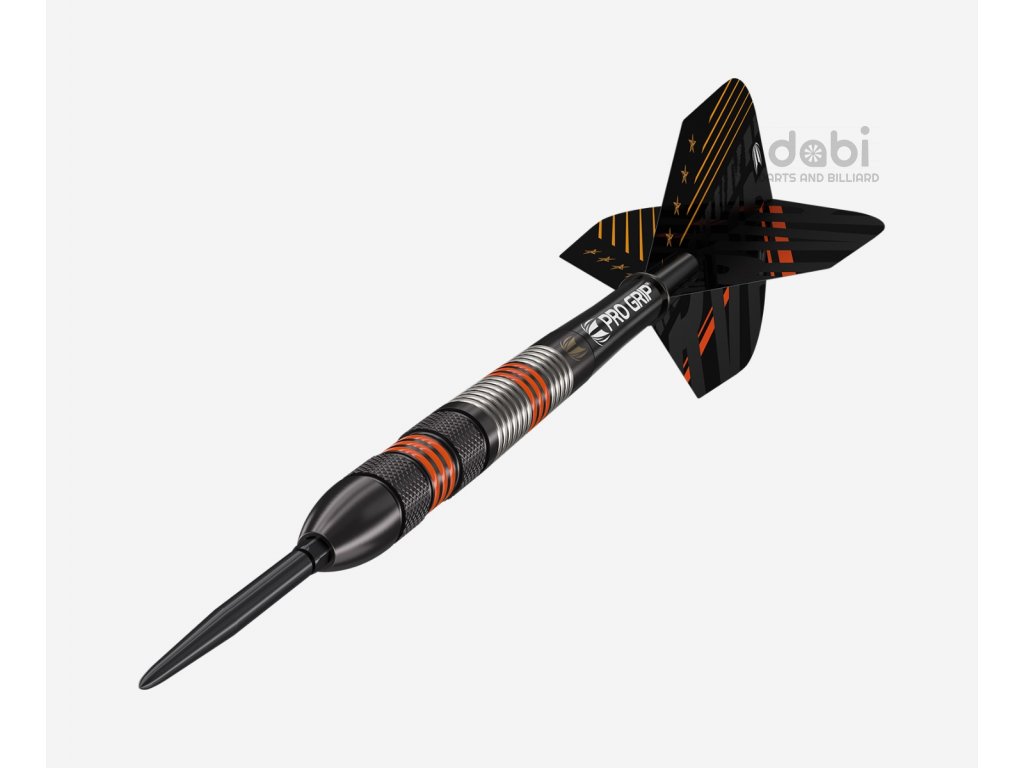 Šipky jsou navrženy s podporou 5-ti násobného mistra světa Raymonda Van Barnevelda. Každý barel se vyznačuje radiálně drážkovaným profilem s výrazným úchopem v zadní části. Přední část barelu obsahuje kombinaci rýhovaných drážek a rýhovaných kroužků, které poskytují perfektní profil úchopu. Barel z 80% wolframu je poté potažen černým PVD Performance povlakem, znovu opracován pro zvýraznění zadních drážek a nakonec jsou přidány dvě řady oranžových proužků, které barel dále vylepšují.
